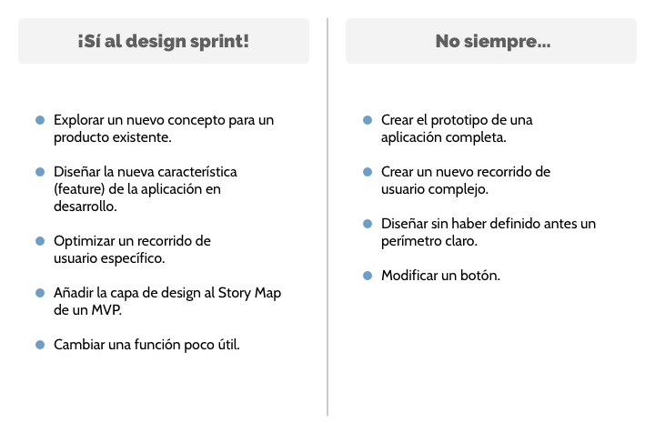 Como podemos ver, el diseño del sprint no es desgraciadamente la respuesta a todos los problemas de nuestros productos, pero nos permitirá en cualquier caso avanzar en una gran variedad de contextos.