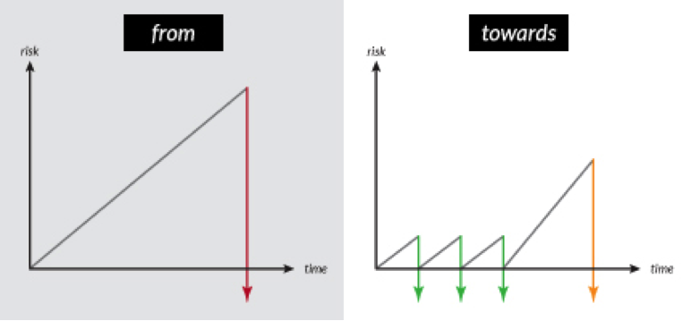 Minimisation du risque grâce aux boucles d’apprentissage, source : Board of Innovation, 2013