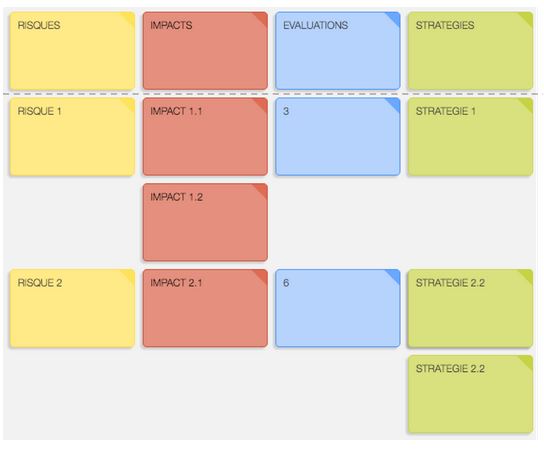 Les impacts qui font consensus au sein du groupe sont inscrits sur post-it et placés en face du risque dont ils découlent. Votre tableau prend forme !