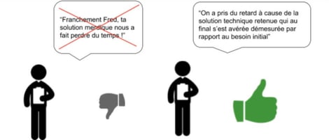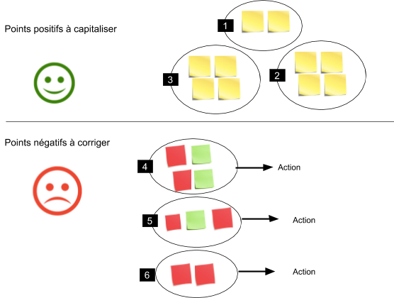 Si vous êtes dans une entreprise mature en terme d’agilité, pour qui ces remontées sont déjà considérées comme faisant partie intégrante du processus d’amélioration continue, tout devrait se passer sans difficulté : vous serez entendu et vous essaierez de vous accorder sur 2 ou 3 rectificatifs actionnables à court et moyen terme avec des porteurs d’actions. Les sujets demandant plus de réflexion seront écartés pour le moment mais à approfondir dans la durée.