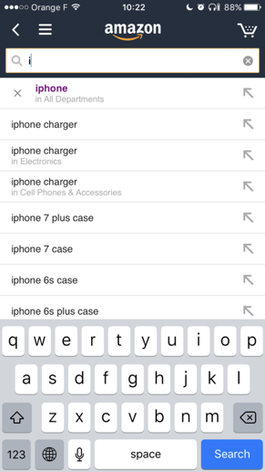 La suggestion a plus de sens lorsqu’on est sur mobile car elle évite à l’utilisateur de taper toute sa recherche, ce qui limite les erreurs, fautes d’orthographes etc… Il est aussi pertinent d’utiliser l’auto suggest pour un acteur de e-commerce comme Amazon. On souhaite dans ce cas étendre le champs des possibles en proposant des produits liés : par exemple si je cherche un smartphone il va aussi me suggérer les coques de protection, les câbles etc...