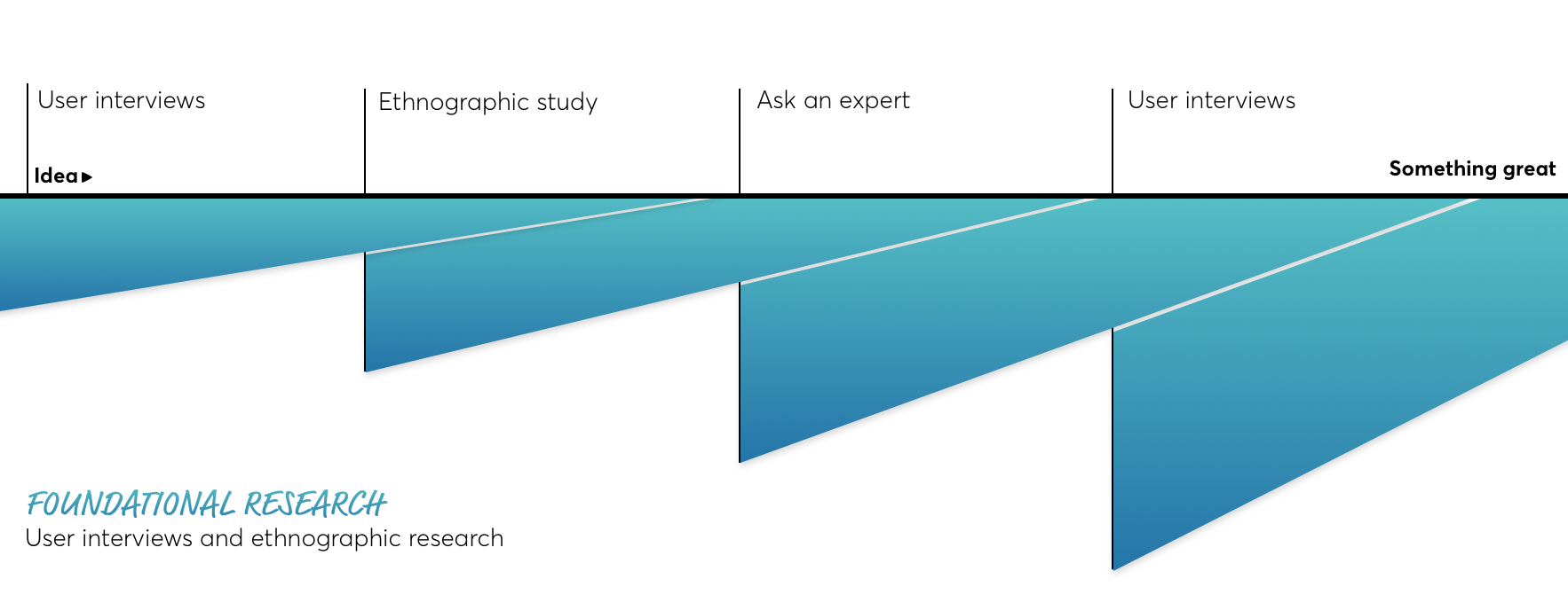 Cela signifie que la recherche fondamentale doit être permanente. Les idées se construisent avec le temps et vous ne devriez jamais cesser de parler à vos utilisateurs et d’apprendre d’eux.