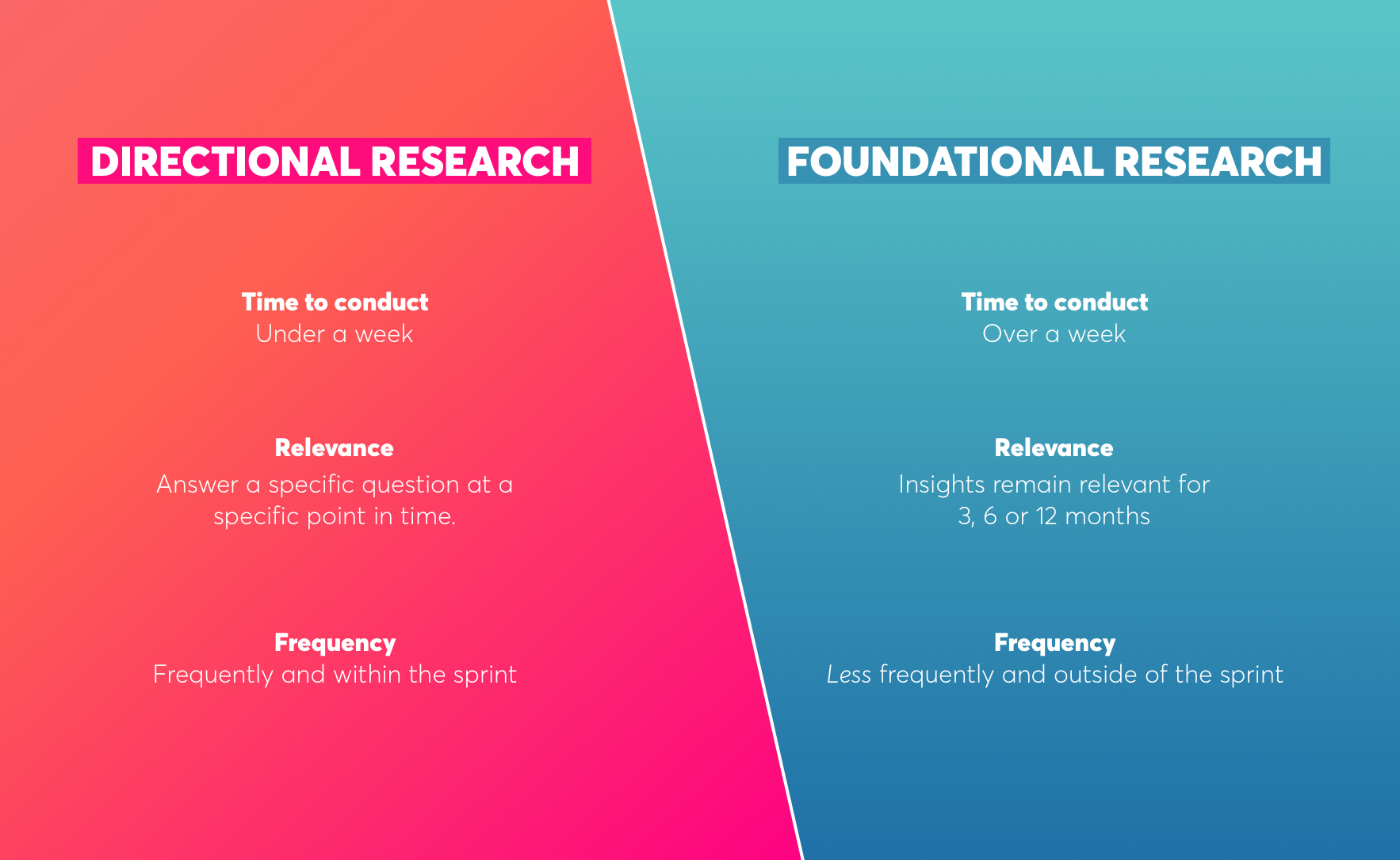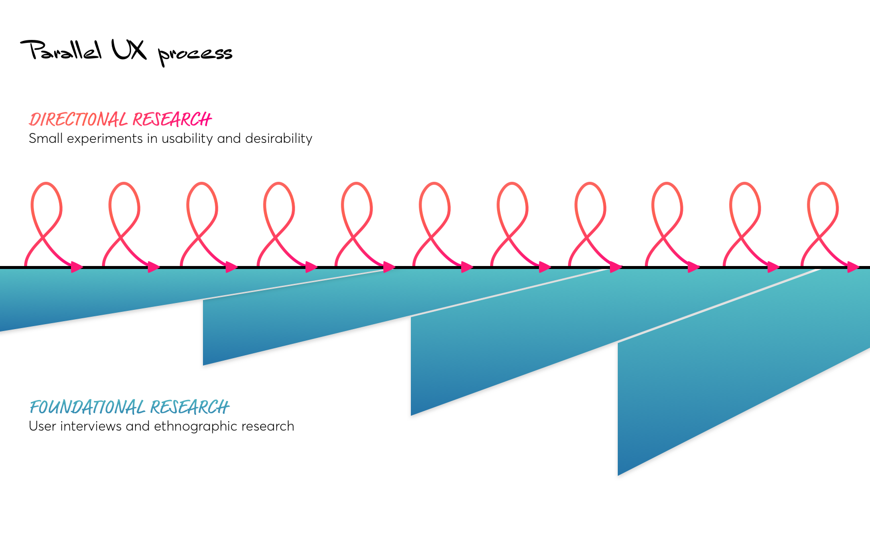 Ces deux flux de recherche UX peuvent être menés indépendamment l’un de l’autre, ce qui permet aux recherches lentes et rapides de coexister.