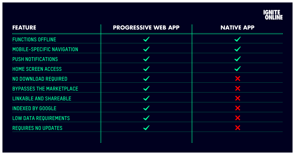 On notera deux avantages majeurs pour les progressive web apps :